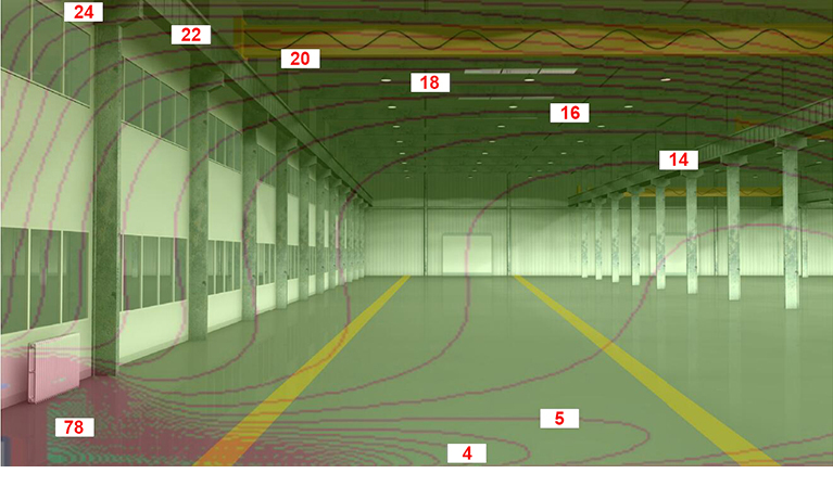 Logistics Warehouse (5.5m height, 4000㎡): Heating improvement of 8℃ and 35% energy savings.